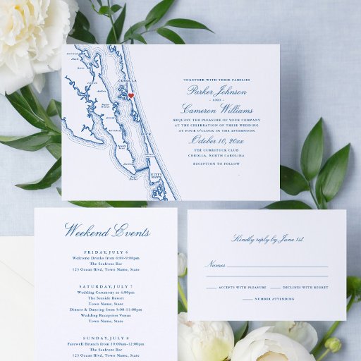 This elegant and simple wedding Accommodations enclosure card includes space for two hotels. Easily customise your wording, change colours or delete any extra wording you don't need by clicking the "Edit using Design Tool" button under "Personalise it". See my shop for more enclosure card options. Featuring a simple and elegant navy blue script font. These are designed to match any of my Coastal Map wedding invitations. Full matching suite available including Save the Dates, RSVP cards, Insert Cards, menus, programs, table cards, thank you notes. Designed and made just for you here in the USA. Your purchase supports jobs here in the United Sates, and Zazzle has a 100% satisfaction guarantee. Buy with confidence!
