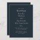 Invite your guests in timeless style with this elegant navy wedding invitation, featuring the couple’s names stacked in a clean, modern serif font paired with delicate script accents. Minimalist botanical flourishes add a subtle touch of romance, while the dark background creates a striking contrast for the white text. Perfect for classic, formal, or modern weddings, this invitation is fully customisable with your details and makes a beautiful first impression for your special day.
