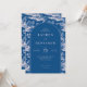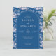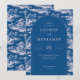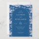 This elegant wedding invitation features a vintage-inspired design with a deep navy blue color palette, creating a sophisticated and timeless look. The layout is vertically oriented, framed by intricate illustrations of lush landscapes and architectural elements that add a touch of classic charm. The central oval shape highlights the main text in a clean serif font, ensuring readability while maintaining an air of formality. Perfect for couples seeking a refined and traditional aesthetic, this invitation sets the tone for a memorable celebration.