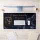 Elegant Navy Blue Marble Square Gold Monogram Desk Mat