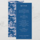 This elegant wedding menu features a deep navy blue background with crisp, white typography that creates a sophisticated and formal atmosphere. The layout is structured and minimalist, with sections for Starters, Salad, Main Course, and Dessert clearly defined by dotted lines and clean headings. Each dish is listed in an easy-to-read serif font, ensuring clarity and refinement. The customizable section at the bottom allows for personalization, making it perfect for special occasions like weddings. The overall design conveys elegance and simplicity, ideal for high-end dining experiences.