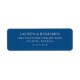 This return address label features a minimalist and modern design with a deep navy blue background and crisp white text, creating an elegant contrast. The layout is simple and centred, with three distinct blocks of text arranged vertically for clarity and balance. Utilising bold serif typography, the design exudes sophistication and professionalism, making it ideal for formal communications or special occasions. Its clean aesthetic emphasizes readability and simplicity, perfect for those who appreciate a straightforward yet stylish approach to stationery.