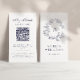 Elegant Navy Blue Monogram QR Code Floral Crest Business Card