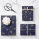 Elegant Navy Blue n Gold Snowflake Christmas Stars Wrapping Paper Sheet