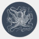 Elegant Navy Blue Octopus Illustration Classic Round Sticker