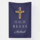 Custom Name Elegant Navy Blue Religious Cross Boy God Bless Banner.