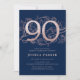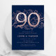 Elegant Navy Blue Rose Gold 90th Birthday Invitation