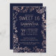 Elegant Navy Blue Rose Gold Floral Sweet 16 Invite