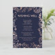 Elegant Navy Blue Rose Gold Floral Wishing Well Invitation