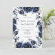 Elegant Navy Blue Rose White Background Wedding Invitation