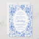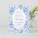 Make a refined first impression with this wedding invitation featuring classic French toile de jouy roses in elegant shades of navy blue, royal blue, dusty blue, and deep blue. Inspired by timeless European floral design, this invitation blends traditional sophistication with modern elegance, perfect for a classic, romantic, or formal wedding celebration.