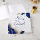 Elegant Navy Blue Roses & Silver Glitter Wedding Guest Book