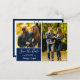 Navy blue elegant save the date postcard with 2 photos from your engagement shoot.