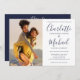 Elegant Navy Blue Script Photo Wedding All In One Invitation