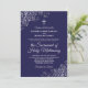 Elegant Navy Blue & Silver Modern Catholic Wedding Invitation