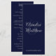 Your wedding day is a celebration of love and togetherness, and this beautifully crafted menu adds a touch of grace to the occasion. Featuring a classic navy backdrop with delicate silver lettering, it conveys timeless elegance while highlighting the carefully chosen dishes. Simple yet refined, it offers your guests a thoughtful guide through the meal and ensures everyone feels welcomed into your special day.