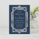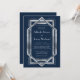 Elegant Navy Blue Silver Vintage Deco Wedding Invitation