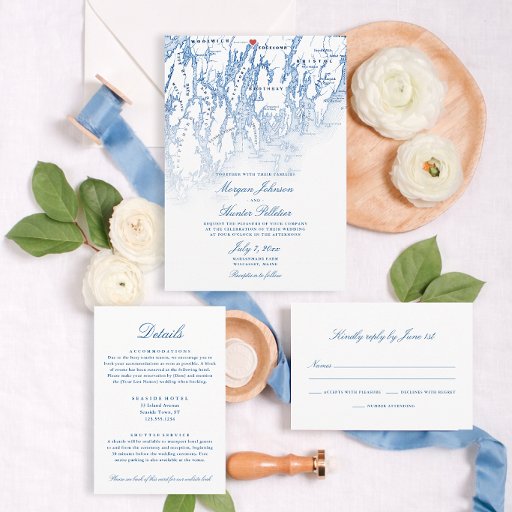 These simple elegant navy blue and white return address labels are perfect for your wedding invitation envelopes, or for your thank you notes, or rehearsal dinner invitations. They have simple and classic all caps font on a navy blue background. Designed to pair with any of my Coastal Map Wedding invitations.