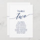 These elegant navy blue table number 2 seating chart cards are perfect for a simple wedding. The neutral design features a minimalist card decorated with romantic and whimsical typography. The card prints on the front and back (double-sided).