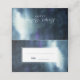 Navy blue and purple watercolor textured design. Guest's name and table # information on the front of the card and the couple's name and date on the back of the card.