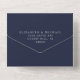 Elegant elopement or wedding announcement and post-wedding reception all in one invitation with light cream typography against dark navy blue background. "Happily Ever After Party" is written in a mix of simple typography and a modern script. A tear away RSVP postcard provides a convenient and eco-friendly and envelope-free response from your guests.