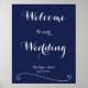 Elegant navy blue wedding reception sign print with changeable white text - you can add Bride's and Groom's name and wedding date. Dimensions of the sign print (poster) are 16 inches by 20 inches.