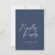 This elegant navy blue RSVP card features a sophisticated and modern calligraphy design with "Kindly Reply" in stylish white script. A convenient QR code allows guests to easily RSVP and select their meal preferences online. Personalised with the couple's names and wedding date, this refined invitation response card is perfect for formal and timeless wedding themes. A modern and stylish way to collect guest responses while adding a touch of elegance to your wedding stationery.