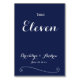Elegant navy blue wedding table numbers with changeable white text and decorative graphics