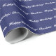Elegant navy blue and white custom script name text pattern birthday Wrapping Paper.