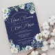 Elegant Navy Blue White Floral Modern Bat Mitzvah Invitation