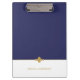 This elegant clipboard features navy blue and white colors divided by gold dots divider on the front side and on the back is navy blue solid color.