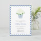 This elegant baby shower invitation features my original art (the ginger jar with hydrangeas), recolored digitally. I've set the template up for a Baby Shower but all of the text fields are customisable to your needs. You can change the contrast colour of the scallop border on the front and seersucker pattern on the back (mid to dark blue) inside the design tool. Underneath the text customisation box, click to "customise further".