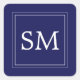 Elegant Navy Blue White Monogram Wedding Square Sticker