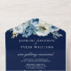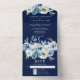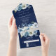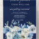 Elegant Navy Blue White Rose Floral Winter Wedding All In One Invitation