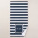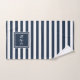 Elegant Navy Blue White Stripe Monogram Bath Towel Set