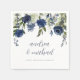 Elegant Navy Blue Wildflowers & Greenery Foliage Watercolor Bouquet Wedding Reception / Bridal Shower Napkins. This design features a beautiful dark blue floral watercolor bouquet above your names in the centre. The couple's names are written in a modern calligraphy style. Edit your names, wedding date and location. You can change the colour of your text and resize and move your design.