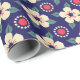 Elegant Navy Blue with Cream Flowers Wrapping Pape Paper