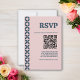 RSVP in style with our Blush Navy Retro Geometric Mid Century Wedding card. On the front of the card, you can add your own QR code image or generate one using Zazzle's customisation tools or delete and replace the text. Add your own details by clicking on the "personalise" option. Embrace timeless elegance with a modern twist. Discover the entire collection for a cohesive wedding theme that radiates sophistication.