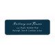 This return address label features a sophisticated and elegant design with a deep navy blue background that creates a striking contrast for the white script font. The layout is clean and minimalistic, focusing on the customisable names at the top in an elaborate cursive style, followed by a smaller serif font for the address, ensuring both elegance and readability. Perfect for formal occasions like weddings or significant announcements, this label exudes a classic and refined aesthetic, making it ideal for those seeking a polished and professional look.