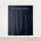 This elegant wedding backdrop features a deep navy blue background with a minimalist layout, creating a sophisticated and timeless look. The design includes customisable text in an ornate script font, centred to emphasize the names and date of your special day. With its clean composition and ample negative space, this backdrop exudes understated luxury, perfect for capturing memorable moments at weddings or anniversaries. The contrast between the white text and dark background ensures readability while enhancing visual impact, making it ideal for formal celebrations.