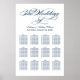 Elegant calligraphy script wedding seating chart poster design features a monogram of the bride and groom names and wedding date and custom template text for twelve (12) table numbers with guest names. Navy blue and white colour scheme can be modified to coordinate with your wedding colours.
