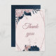 elegant navy & dusty rose flowers and leaves botanical geometric thank you card