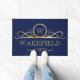 Elegant Navy & Faux Gold Ornate Monogram Doormat