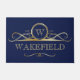 Elegant navy blue doormat printed with a faux gold look for your family monogram. Add initial, name, and year established.