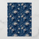 This elegant wedding invitation features a classic rectangular layout with a deep navy blue background adorned with a floral pattern of large roses and smaller foliage in lighter shades of blue and white. The design showcases a symmetrical composition, creating a harmonious and balanced look that is both vintage-inspired and modern. The central text box, framed by decorative borders, uses a mix of serif fonts to highlight the customizable names and event details, ensuring clarity and visual appeal. The overall mood exudes sophistication and celebration, making it perfect for formal weddings.