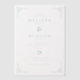 This elegant wedding invitation features a classic and timeless design with a dark navy background complemented by light teal accents, creating a sophisticated atmosphere. The layout is vertically oriented, centered, and balanced, utilizing ample negative space to highlight the crisp typography and subtle geometric corner motifs that add a touch of refined elegance. The serif fonts throughout convey formality and refinement, making it perfect for a significant life event. Ideal for couples seeking a polished and traditional look, this invitation sets the tone for an anticipated celebration.