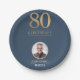 Elegant Navy & Gold 80th & Legendary Birthday Paper Plate