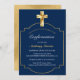 Celebrate your son's Confirmation with family and friends by inviting them with this elegant faux gold Confirmation Invitation. This design features a beautiful golden cross with a golden frame against a simple navy blue background and a beautiful faux gold textured back. Customise the text and font to your liking. Other fonts, colours, and styles available. Please contact us with you special request and we'd be happy to help you.