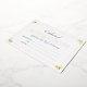 Elegant and minimalist certificate of authenticity flat card in gold foil and white to which you can add your name or business name inside a vintage golden frame with navy and gold fonts.