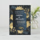 Create a stunning first impression with this Elegant Navy and Gold Floral Wedding Invitation, featuring a luxurious modern botanical design with 3D gold flowers, metallic line art leaves, and intertwined wedding rings. Perfect for romantic, formal, or black-tie weddings.
